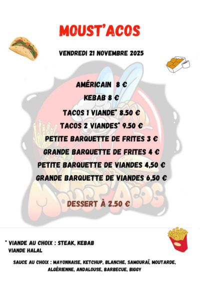 Sur place, devant le centre avec possibilté de manger dans la salle (elle sera ouverte le vendredi à partir de 19h et elle restera ouverte entre les 2 milongas du samedi)