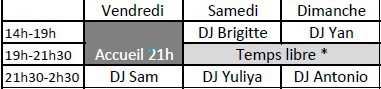 la salle sera fermée entre 19h15 et 21h15